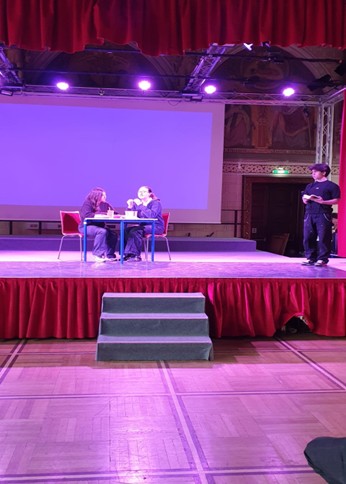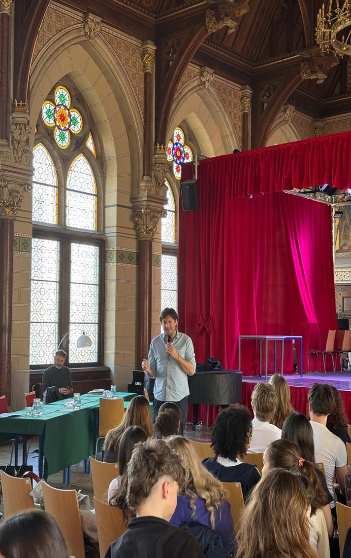 La rencontre s’est poursuivie à midi à l’AkG par un événement littéraire. Les élèves de l’AkG et du Lycée français ont présenté des scènes inspirées de l’oeuvre Léa ou la théorie des systèmes complexes.